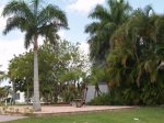 This exceptional lot stands out with a variety of special features that make it truly unique. Boasting an impressive frontage of over 120 feet—wider than three standard lots—it offers a grand sense of space, framed by mature royal palms and a raised patio area that provides serene views overlooking the lake. The property includes a beautifully landscaped, park-like setting with lush grass, paver pathways, and a central island featuring a striking bird of paradise plant. Large shade trees and distinctive plantings offer both natural beauty and a sense of privacy. For added convenience, the oversized paver stone RV parking area is equipped with 50-amp power on both sides, making it ideal for electric vehicle charging. The well-equipped coach house adds even more functionality, featuring a sink, counter space, cupboards, a stacked washer and dryer, hot water heater, cedar-lined closet, storage closet, and a dedicated workspace with a desk. This lot combines comfort, beauty, and practicality—schedule your visit today!