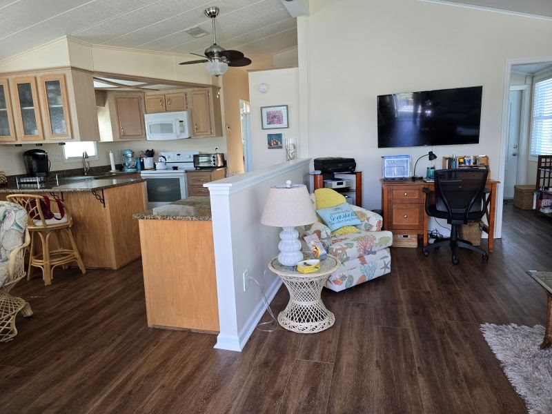 This charming 1-bedroom plus den home offers comfort, style, and convenience in a desirable cul-de-sac location. Featuring a beautiful flagstone driveway and generous outdoor storage, this property is as practical as it is inviting. Inside, the open layout showcases granite countertops and is offered fully furnished and equipped to make this home move-in ready. Enjoy peaceful lake views from your windows and outdoor spaces, creating the perfect backdrop for relaxation or entertaining. Located in an amenity-rich community with endless opportunities for recreation and social activities, this home delivers the best of lakefront living and resort-style comfort.